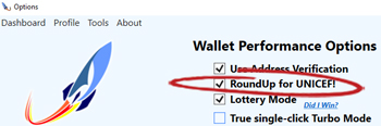 In your Rocket Wallet, navigate to 'Options'. You can check the Round-up checkbox there.